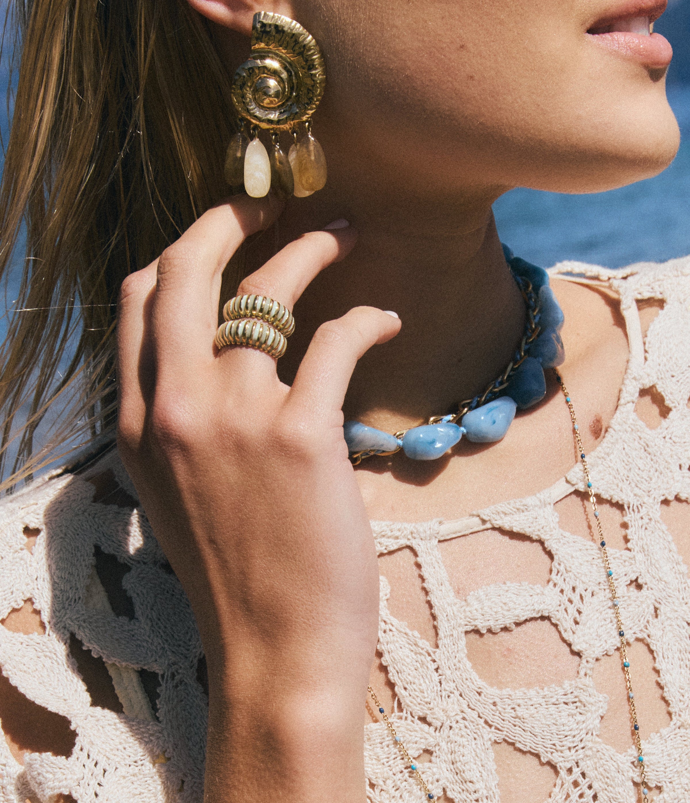 • Una pieza que combina elegancia y naturalidad. Su diseño en forma de caracol evoca el encanto del mar, mientras que los óvalos colgantes de resina en tonos cálidos aportan movimiento. Ligeros, sofisticados y con acabado artesanal.